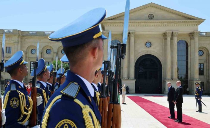 Cumhurbaşkanı Recep Tayyip Erdoğan, Cumhurbaşkanlığının yeni döneminde KKTC’ye gerçekleştirdiği ilk ziyaretinin ardından Azerbaycan’ın başkenti Bakü’ye geçti. Bugünkü temasları kapsamında ilk olarak şehitlik ziyaretini gerçekleştiren Erdoğan, Bakü’de Azerbaycanlı mevkidaşı İlham Aliyev tarafından Gençlik Sarayı’nda resmi törenle karşılandı. İki ülkenin milli marşlarının okunduğu törende Cumhurbaşkanı Erdoğan, daha sonra karşılama kıtasını selamladı. Erdoğan’a Azerbaycanlı heyetin, Aliyev’e de Türk heyetinin takdim edildiği törenin son bulmasıyla Erdoğan ve Aliyev, baş başa görüşmeye geçti. Erdoğan ve Aliyev’in heyetler arası görüşme yapması ve ortak basın toplantısı düzenlemesi bekleniyor.