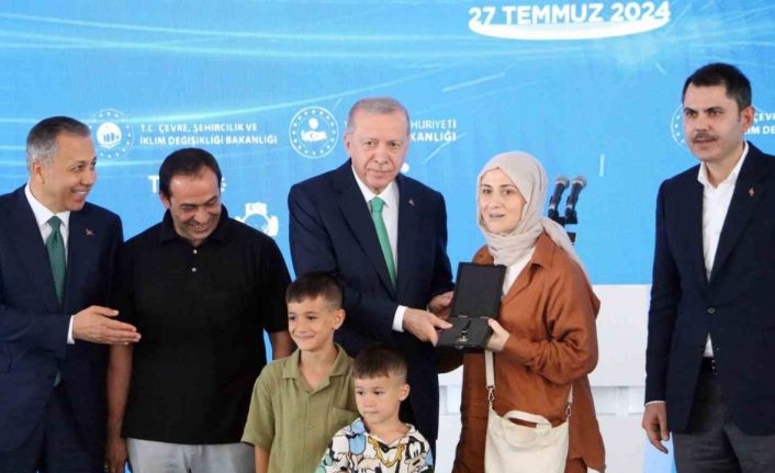 Erdoğan’ın konuşmasının ardından yapılan Afet Konutları’nın anahtarları hak sahiplerine teslim edildi, toplu açılış töreni gerçekleştirildi.