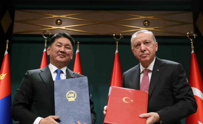 Moğolistan Cumhurbaşkanı Ukhnaa Khurelsukh ve heyetini Türkiye’de ağırlamaktan memnuniyet duyduğunu belirten Cumhurbaşkanı Erdoğan, "21 yıl sonra gerçekleşen bu ziyaretinde Sayın Cumhurbaşkanına hükümet üyeleri, milletvekilleri, üst düzey bürokratlar, iş insanları, sanatçılar ve basın mensuplarından oluşan kalabalık bir heyet eşlik ediyor. Ben de önümüzdeki dönemde Moğolistan’a bir iadeyi ziyarette bulunmayı istiyorum. Geçtiğimiz sene de ülkelerimiz arasındaki diplomatik ilişkilerin tesisinin 55. yıl dönümüydü. Münasebetlerimizi 2004 yılında kapsamlı ortaklık seviyesine çıkardık. Bugün değerli dostumla, özellikle ilişkilerimizi daha ileriye taşıyacak kararlar aldık. Stratejik ortaklık tesisine yönelik ortak bildiriyi az önce huzurlarınızda imzaladık” dedi.