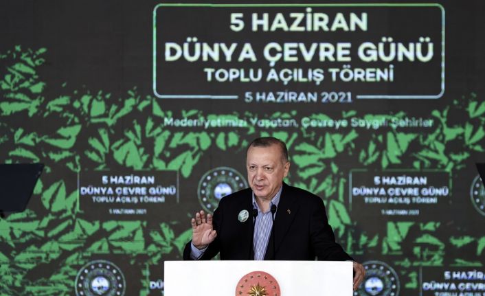 Cumhurbaşkanı Recep Tayyip Erdoğan, “5 Haziran Dünya Çevre Günü Toplu Açılış Töreni” kapsamında Türkiye’nin farklı şehirlerinde Çevre ve Şehircilik Bakanlığı yatırımlarının toplu açılışını gerçekleştirdi. Türkiye genelinde 10 millet bahçesi ile 3 şehirde atık su arıtma, bir şehirde içme suyu arıtma tesisinin açılışını yaptıklarını kaydeden Cumhurbaşkanı Erdoğan, 5 ilçedeki atık getirme merkezlerinin ve Konya Kulu ile birlikte Antalya Kaş, İstanbul Pendik, Muğla Seydikemer ilçelerinde yapımı tamamlanan bisiklet yollarının da resmi açılışının gerçekleştirildiğini aktardı. Cumhurbaşkanı Erdoğan, böylece toplamda 814 milyon lirayı bulan millet bahçesi, atık su arıtma tesisi, atık getirme tesisi ve bisiklet yolunun halkın istifadesine sunulmuş olduğunu dile getirerek, Muğla’daki 37 mavi bayraklı halk plajı, Köyceğiz ve Dalyan’da 38 korunan alan, Muğla Gökova, Konya Beyşehir, Samsun Kızılırmak’ta 120 koruma izleme alanı ile Kastamonu’da doğu çınarı ve Mersin’de zeytin olarak 84 anıt ağacıyla ilgili çalışmaların resmi açılışının da bu törenle gerçekleştirildiğini söyledi.