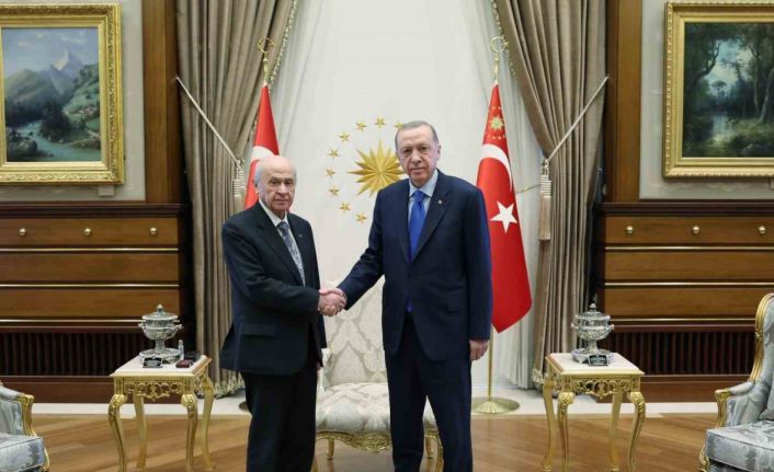 Cumhurbaşkanı Recep Tayyip Erdoğan, MHP Genel Başkanı Devlet Bahçeli ile bir araya geldi. Cumhurbaşkanlığı Külliyesi’ndeki kabul basına kapalı gerçekleşti. Görüşme yaklaşık 1 saat sürdü.