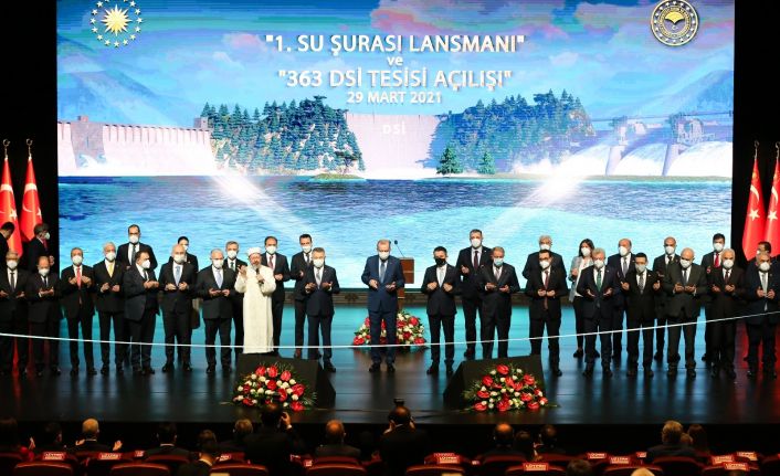 Cumhurbaşkanlığı Külliyesinde yapılan 1. Su Şurası Lansmanı ve 363 Tesisin Hizmete Alım Töreni’nde konuşan Cumhurbaşkanı Erdoğan, nüfusun hızla çoğalması, iklim değişikliği, kuraklık gibi sebeplerle su ihtiyacının giderek arttığını, su ihtiyacı artarken insanlığın istifadesinde bulunan su kaynaklarının da günden güne azaldığına dikkat çekti.
