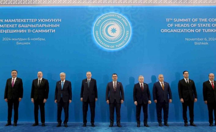 Cumhurbaşkanı Recep Tayyip Erdoğan, Bişkek’te katılacağı Türk Devletleri Teşkilatı (TDT) Devlet Başkanları Konseyi 11. Zirvesi öncesi aile fotoğrafı çekimine katıldı.