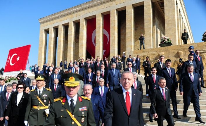 29 Ekim Cumhuriyet Bayramı için ilk tören Anıtkabir’de yapıldı. Cumhurbaşkanı Recep Tayyip Erdoğan ve devlet erkanı Anıtkabir’i ziyaret etti.