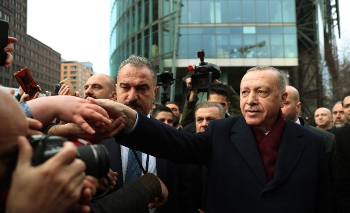 Cumhurbaşkanı Recep Tayyip Erdoğan, Almanya Başbakanı Angela Merkel’in daveti üzerine Libya konusunda gerçekleştirilecek Zirve’ye katılmak için Almanya’nın başkenti Berlin’e geldi. Erdoğan, kalacağı Ritz Carlton Otel’in önünde kendisini bekleyen vatandaşlar tarafından sevgi gösterisiyle karşılandı. Erdoğan, vatandaşlarla sohbet ettikten sonra otele giriş yaptı.