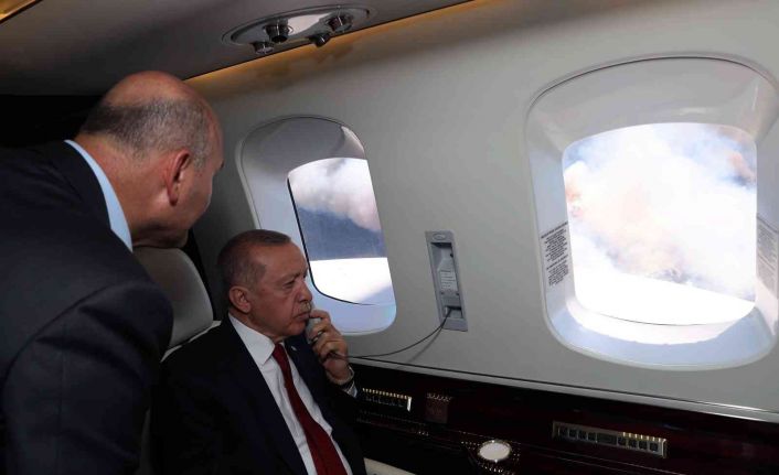 Cumhurbaşkanı Recep Tayyip Erdoğan, Marmaris’teki yangın bölgesinde havadan incelemelerde bulundu.