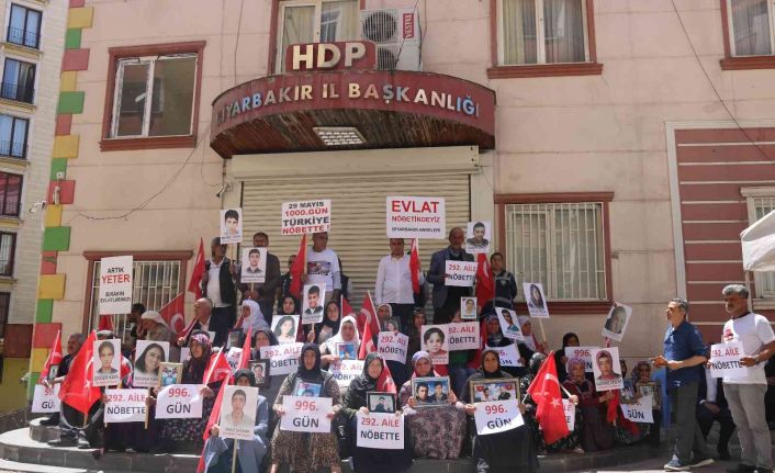 Diyarbakır’da ailelerin dağa kaçırılan evlatları için HDP Diyarbakır İl Başkanlığı binası önünde 3 Eylül 2019’da başlattığı oturma eylemi 1000. gününde. 1000 günde, 301 ailenin katıldığı evlat nöbetinin zaferinde 35 evlat ailesine kavuştu, HDP yönetimi, Diyarbakır İl Başkanlığı binasının kepengi indirerek faaliyetlerini ilçe binalarına taşıdı.