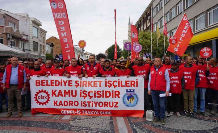 Edirne Belediyesi şirketlerinde çalışan işçiler kadro talebi ile basın açıklaması yaptı.