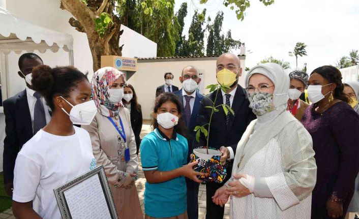 Caisse Uluslararası Maarif Okulları Kampüsü’nün bahçesinde düzenlenen törende, Emine Erdoğan’a saksıda baobab fidanı hediye edildi. Ardından okul bahçesine katılımcılar tarafından fidan dikimi gerçekleştirildi. Heyet, daha sonra okulu gezerek öğretmen ve öğrencilerle sohbet etti, okullarla ilgili bilgi aldı.