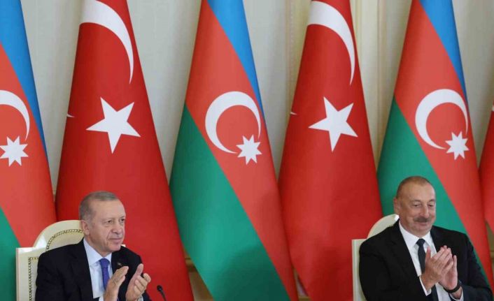 Cumhurbaşkanı Recep Tayyip Erdoğan ve Azerbaycan Cumhurbaşkanı İlham Aliyev, Gençlik Sarayı’nda gerçekleştirdikleri baş başa ve heyetler arası görüşmelerin ardından ortak basın toplantısı düzenledi. Erdoğan, yaptığı konuşmada, seçimlerde milletin teveccühüyle galip gelmesinin ardından ilk ziyaretlerini, Kuzey Kıbrıs Türk Cumhuriyeti ve aynı gün Bakü’ye gerçekleştirmenin kendisini ayrıca mutlu ettiğini söyledi.