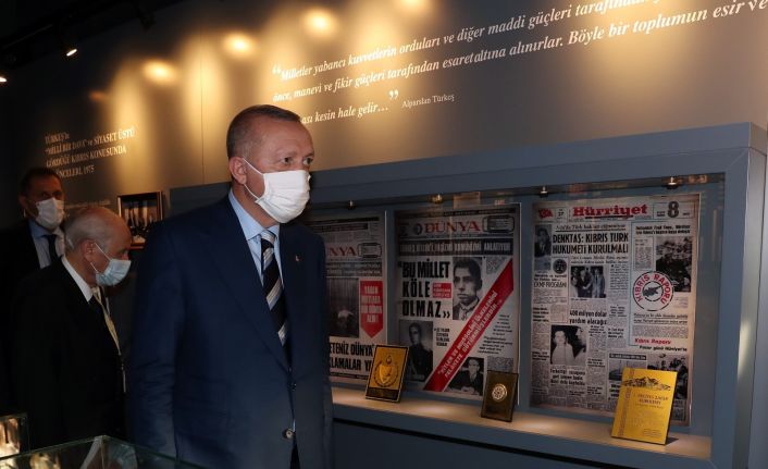 Cumhurbaşkanı Recep Tayyip Erdoğan, Kıbrıs Barış Harekatı’nın 47. yıl dönümü nedeniyle ziyaret ettiği KKTC’de temaslarını sürdürüyor. KKTC Cumhuriyet Meclisi’nde özel oturumda konuşan Erdoğan, MHP Genel Başkanı Devlet Bahçeli ile birlikte merhum Alparslan Türkeş’in Lefkoşa’da doğduğu ve müzeye çevrilen evini ziyaret etti.