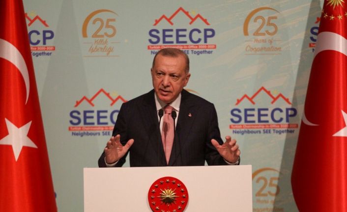 Güney Doğu Avrupa’da barış, güvenlik ve istikrar ortamını sağlam temeller üzerine inşa etmek amacıyla 1996 yılında Güney Doğu Avrupa İş Birliği sürecini hayata geçirdiklerini hatırlatan Erdoğan, “İyi komşuluk ilişkilerini esas alan iş birliği sürecinin bu sene 25. kuruluş yıl dönümünü kutluyoruz. Sürecin bu günlere gelmesinde emeği ve katkısı bulunan tüm devlet ve hükümet başkanlarına, bakanlara, diplomatlara şahsım ve milletim adına teşekkür ediyorum. 7 ülkenin öncülüğünde çıktığımız bu yolda 25 yıl içinde 13 katılımcıya sahip büyük bir aile olduk. Siyasi kriz dönemlerinde dahi bölge ülkelerinin aynı masa etrafında buluşabilmesini konuşabilmesini hedefledik. Bölgenin son çeyrek asırdaki tecrübelerine baktığımızda sürecin iş birliği ve diyalog formu olan özelliğini layıkıyla yerine getirdiğini görüyoruz” dedi.