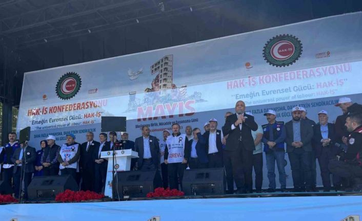 “Hak-İş’in 1 Mayıs meydanından, Azerbaycan’dan Japonya’ya, Bosna Hersek’ten İtalya’ya, Bulgaristan’dan sana kadar Makedonya’dan Rusya’ya Portekiz’den Kuveyt’e, Somali’den, Gürcistan’a, Norveç’ten Moritanya, Ürdün’den Pakistan’a kadar bizlere dayanışma duygularını ifade eden dünya emekçilerinin 1 Mayıs’ını kutluyoruz. 1 Mayıs, toprağın tohuma kavuştuğu, Gözyaşının alın teriyle buluştuğu bereketli bir gün.. Hakk’ın, Emeğin, Alın Terinin dile geldiği bir gün. Bütün dileklerimiz, taleplerimiz isteklerimiz bu yıl Kahramanmaraş’tan dile geliyor. Çünkü; ‘Maraş, Türkiye’nin köşe taşıdır, Maraş tarihler inşa ettiren Koca Sinanlar’ın ustabaşıdır.’ Onun içindir ki bugün emeğimiz için, haklarımız için, yaralarımızı birlikte sarmak için sesimiz Kahramanmaraş’tan yükseliyor! Sesimiz; yeryüzünün tüm mazlum coğrafyalarında yankı buluyor. Tüm dünya emekçilerinin yüreklerini ayağa kaldırıyor. Çünkü gözyaşının ve alın terinin rengi tüm yeryüzünde aynıdır. Çünkü biz, nerede bir mazlum varsa; Onların derdiyle dertlenen, Onların acısını duyan, onlarla gelecek birliği yapan bir misyonun sahipleriyiz. O’nun için 1 Mayıs’ta sesimiz gür çıkmalı, dalga dalga yayılmalı. Bizim “derdimiz var” onun için alanlardayız! HAK-İŞ olarak, üyelerimizin ve tüm emekçilerin hak ve çıkarları için yoğun bir mücadele yürütüyoruz. Hak ve emek mücadelemizde yanımızda olan, bize katkı verenlere içtenlikle teşekkür ediyoruz. 1 Mayıs’ı 2009 yılında Emek ve Dayanışma Günü, 2010 yılında da tatil ilan ederek tarihi bir adım atan Cumhurbaşkanımız Recep Tayyip Erdoğan’a teşekkür ediyoruz. 1 Mayıs’ı istismar edenler, yıllarca bir Mayıs’ın arkasında ideolojik kavgalar yapanlara karşı Sayın Erdoğan’ın duruşu ortaya koyduğu hizmetler için yürekten teşekkür ediyoruz. Daha yapacak çok işimiz olduğunu biliyor ve sorunların çözümü için çalışmaya devam ediyoruz. “