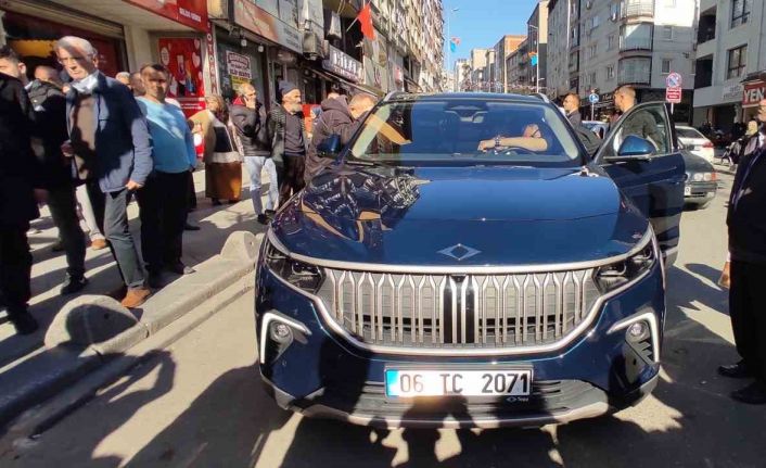 Parti önündeki yerli ve milli otomobil TOGG’u gören vatandaşlar, fotoğraf çekinmek için kalabalık oluşturdu. Vatandaşlar, TOGG’u detaylıca inceledi.