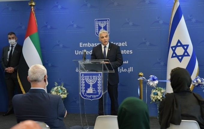 Birleşik Arap Emirlikleri’nin (BAE) başkenti Abu Dabi’ye gelen İsrail Dışişleri Bakanı Yair Lapid, İsrail’in Abu Dabi Büyükelçiliği açılış törenine katıldı.