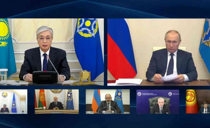 Cumhurbaşkanı Tokayev, Kazakistan’ın inisiyatifi üzerine video konferans yoluyla düzenlenen Kolektif Güvenlik Anlaşması Örgütü (KGAÖ) olağanüstü zirvesinde konuştu. Toplantıda, ülkede akaryakıt fiyatlarına gelen zamların ardından düzenlenen protestolar sonucunda Kazakistan’ın bağımsızlık tarihinin en kapsamlı ve zor krizini yaşadığını belirten Tokayev, KGAÖ’nün askeri desteğinin yanı sıra manevi desteğinin de kendileri için önemli olduğuna değindi. Ülkedeki olaylara uzun zamandır hazırlık yapıldığını ve organizatörlerin barışçıl gösterileri fırsat bilip bunu kötüye kullandığını belirten Tokayev, “Teröristlerin asıl amacı iktidara el koymaktı” dedi.
