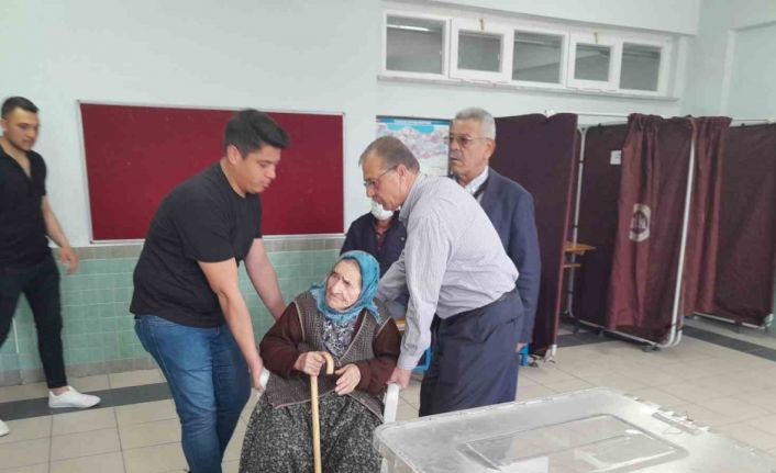 Konya’nın Karapınar ilçesinde 99 yaşındaki Zahide Balıkçı, arabayla getirildiği okulda sandalyeye oturtulup taşınarak bağlı olduğu sandıkta oy kullandı.