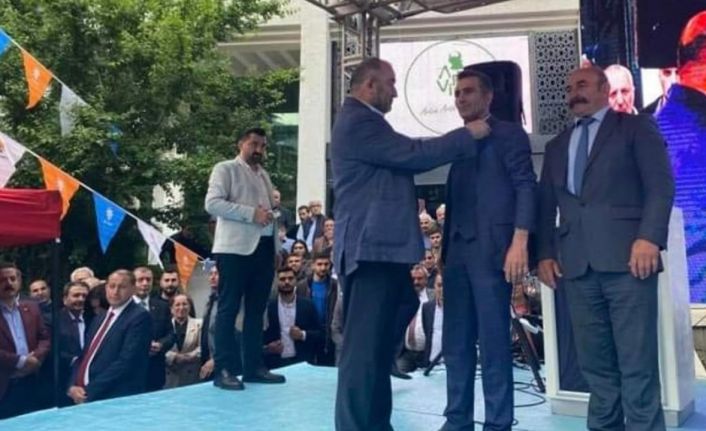 AK Parti mitinginde yoğun tezahüratlar eşliğinde kürsüye çıkan her iki isme AK Parti rozetlerini Cumhurbaşkanı Başdanışmanı Dr. İsrafil Kışla taktı.