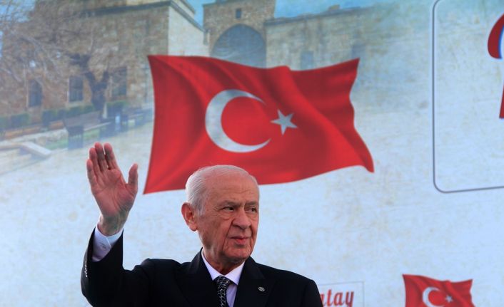 "Bu sistemi değiştirmeye yönelmek Türkiye’ye ihanet olur" diyen Bahçeli, "O zaman bütün Hataylılar böyle bir sürece karşı bir de yaşanan felaketler oldu. Depremler oldu, seller oldu. Buna benzer yangınlar oldu. Bütün bunları aşarak böyle bir hizmeti sunmak isterken tekrar geriye dönüş yaygarasıyla, ’parlamenter sisteme dönmemiz lazımdır’ diyerek milleti aldatarak, türlü türlü yalanla, dolanla, soğanla, patatesle kandırmaya yönelenlere eğer inanmış olsaydık bugün Türkiye’de bu büyük felaketin altından kalkmak inanın ki mümkün olmazdı. Ama Cenab-ı Allah lütfetti. 24 Haziran seçimlerinde bir dönüşüm sağlandı. Bu milli bir reform olarak siyasi hayatımızda yerini alan Cumhurbaşkanlığı hükümet sistemine geçiş oldu. Cumhurbaşkanlığı hükümet sistemine geçiş rejimi değiştirmek anlamı taşımaz. Bunu söyleyenler rejimi tekrar eski yere götürmeye, darbeler, fitneyle, fesatla ülkeyi yönetmeye çalışan parlamenter sistemin uşakları olmuşlardır. O sebepten dolayı Cumhurbaşkanlığı hükümet sistemi 5 yıla yakın bir süredir ülkemizi önce ekonomik, sosyal sıkıntılarını aşmak için yangınıyla, seliyle, depremiyle her türlü fedakarlığı yaparken Türkiye’yi de birçok yönüyle geleceğe hazırlayan ve bugün için tekrar yeni bir yüzyılı milletçe yaşatmaya imkan tanıyan bir kararlılıkla büyük bir fedakarlık içerisinde bir sistemi hayata geçirmişlerdir. Bu sistem başarılı olmuştur. Bu sistemi değiştirmeye yönelmek Türkiye’ye ihanet olur. Onun için sistemden vazgeçemeyiz. Cumhurbaşkanlığı hükümet sistemini devamlı kılmak yapılan hizmetleri durdurmamak gerekmektedir. Öyleyse muhterem Cumhurbaşkanı Sayın Recep Tayyip Erdoğan’ı on üçüncü kez tekrar Cumhurbaşkanı yaparken Cumhurbaşkanlığı hükümet sistemini ikinci dönemini de yaşamaya ülkeye hazır hale getirmek mecburiyetindeyiz” şeklinde konuştu.