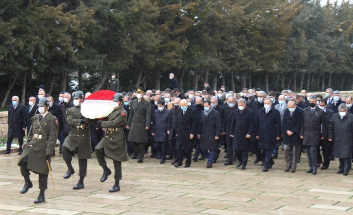 Aslanlı Yol’dan yürüyerek Mustafa Kemal Atatürk’ün mozolesine gelen MHP Lideri Bahçeli, burada Atatürk’ün mozolesine çelenk bıraktı. Ardından saygı duruşunda bulunuldu ve İstiklal Marşı okundu. Bahçeli ve beraberindeki heyet daha sonra Misak-ı Milli kulesine geçti. Anıtkabir Özel Defteri’ni imzalayan MHP Lideri Bahçeli, “Devletimizin kurucusu, İstiklal Savaşımızın Başkomutanı, ilk Cumhurbaşkanımız Aziz Atatürk; Milliyetçi Hareket Partisi 13. Olağan Büyük Kurultay’ında seçilen Merkez Yönetim Kurulu ve Merkez Disiplin Kurulu üyeleriyle manevi huzurunuzdayız. En büyük eserim dediğin Türkiye Cumhuriyeti’ni kuruluş ilkelerine bağlı şekilde, muhafaza ve müdafaaya azmimiz zaafa uğramayacaktır. Bu husustaki irade ve güç kaynağımız elbette büyük Türk milletidir. Açtığın yolda gösterdiğin hedeflerde durmaksızın, yorulmaksızın, ilerleme kararındayız. Nice zahmetlere göğüs gererek, kurup bizlere emanet ettiğin Cumhuriyet’i Cumhur’un muazzam birlik ve diriliş ruhuyla yaşatma ve geleceğe taşıma mücadelemizi inanmışlıkla sürdüreceğiz. Milliyetçi Hareket Partisi muhterem hatıralarını kutlu fikir ve düşüncelerini her zaman sahiplenecek, milletimizin istiklal ve istikbal hatlarını kahramanca savunacaktır. Bu vesileyle 13. Olağan Büyük Kurultay’ımızın ülkemize, milletimize ve Türk siyasetine yeni bir soluk yeni bir heyecan ve yeni bir umut getirmesini temenni ediyor zat-ı devletlerini hürmetle, rahmetle ve minnetle anıyorum. Ruhun şad olsun” dedi.