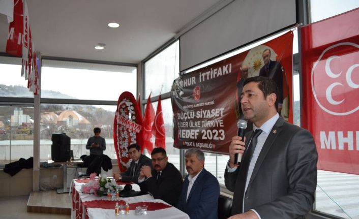 MHP Tokat İl Başkanlığı öncülüğünde Reşadiye İlçe Başkanlığı tarafından “Güçlü Siyaset Lider Ülke Türkiye Hedef 2023” toplantısı düzenlendi. Toplantıda konuşan MHP Tokat Milletvekili Yücel Bulut, bir televizyon programında Cumhurbaşkanı Recep Tayyip Erdoğan’a yönelik sözleri nedeniyle Sedef Kabaş’a tepki gösterdi. Bulut, “Sabah akşam bıkmadan, yılmadan ve usanmadan ve şimdi de Fetullahçı Terör Örgütü’yle bir ve beraber aynı noktada hareket ederek bizleri hedef alarak, Cumhur İttifakı’nı hedef alarak sabahtan akşama kadar kin kustuklarını, kan kustuklarını görüyorsunuz. Daha iki gün önce kendisine gazeteci diyen bir şaşkın, bir edepsiz, bir terbiyesiz, bu ülkenin Cumhurbaşkanına benim zikredemeyeceğim bir terbiyesizlikle hakaret etti. Şimdi soruyorum, Milliyetçi Hareket Partisi’nin duruşunu sorgulayanlar, duruşunu anlamlandıramadığını ifade edenlere, sizin için anlamlı olması adına Milliyetçi Hareket Partisi 70’li yıllardan beri Türk milletini kan ve gözyaşına mahkum edenlere de aynı siyasi çizgide mi duracaktı? Üç gün önce Sayın Cumhurbaşkanımıza edepsizce hakaret ederek bu gazeteci müsveddesiyle aynı yerde mi duracaktı? Milliyetçi Hareket Partisi de onların kervanına katılıp sırf ’Recep Tayyip Erdoğan alaşağı edilsin de ülke ne hale geliyorsa gelsin’ diyecek kadar şirazesinden çıkmış olan Kandil uçaklarıyla ve beslemeleriyle mi yan yana duracaktı? Zinhar tek bir ülkücüsünün ve tek bir Türk milliyetçisinin temenni edebileceği bir şey değildir. Bizler eğer ki devletimizin tüm dünya aynı anda içimizde 50 yıldır besledikleri terör örgütleriyle birlikte yan yana durarak ve onları taşeron olarak kullanarak, tüm dünya eğer bu ülkenin seçilmiş cumhurbaşkanını alaşağı etmek üzere plan ve eylem kuruyorsa, Türk milliyetçileri de Anadolu’dan, Reşadiye’den, Erbaa’dan, Niksar’dan, Kelkit’ten hep beraber haykırmak zorundadır. Mademki derdiniz Recep Tayyip Erdoğan, mademki onu alaşağı etmek niyetindesiniz, biz de Türk milliyetçileri ve ülkücüler olarak burada hepinize hodri meydan diyoruz. İndirebilirseniz indirin" dedi.