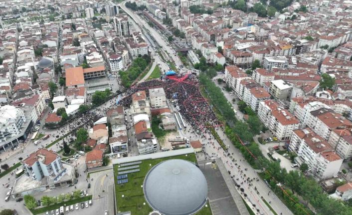 Millet İttifakı’nın Bursa’da Gökdere Meydanı’nda yaptığı miting havadan dron ile görüntülendi.