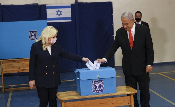 İsrail Başbakanı Binyamin Netanyahu ve eşi Sara Netanyahu, erken parlamento seçimleri için oyunu kullandı.