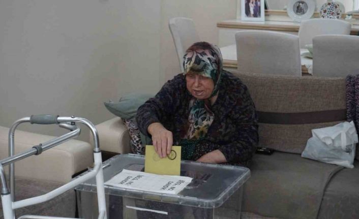 İl Seçim Kurulu görevlileri, Şükrüpaşa Mahallesi’nde ikamet eden ve rahatsızlığı nedeniyle oy kullanmaya gidemeyen 82 yaşındaki Hacer Arda’nın, evine seyyar sandık götürdü.