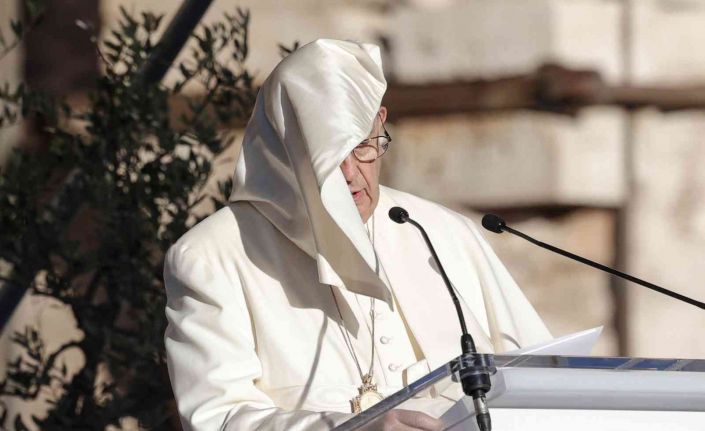 Katoliklerin ruhani lideri Papa Francis, dün Vatikan’a veda ziyareti kapsamında gelen Almanya Başbakanı Angela Merkel’i ağırlamış, ikili birlikte Katolik derneği Sant’Egidio tarafından tarihi arena Kolezyum’da düzenlenen "Kardeş halklar, gelecekteki topraklar" isimli etkinliğin kapanış törenine katılmıştı. Papa törende konuşma yapmak üzere kürsüye çıktığında rüzgarın azizliğine uğradı. Şiddetli rüzgarın etkisiyle Papa’nın cüppesi uçuşmaya başladı. Yüzüne doğru uçan cüppesini eliyle geriye iten Papa, bozuntuya vermeden konuşmasını sürdürmeye çalıştı ancak bu defa da cüppesi yüzünü tamamen kapattı. Kısa süreli uğraşının ardından rüzgara karşı verdiği mücadeleyi kazanan Papa, cüppesini düzelterek konuşmasına kaldığı yerden devam etti. Papa’nın zor anları fotoğraf karelerine yansıdı.