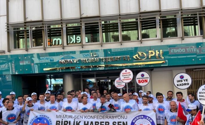 Birlik Haber-Sen (Haberleşme ve İletişim Çalışanları Sendikası) Genel Başkanı Ömer Budak, PTT personellerinin çalışma hayatında yaşadığı zorluklar hakkında PTT Genel Müdürlüğü önünde birtakım açıklamalarda bulundu.