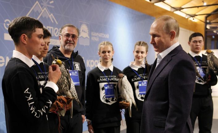Rusya Devlet Başkanı Vladimir Putin, Rusya’nın Kamçatka Bölgesi’ne yaptığı ziyarette türü yok olma tehlikesiyle karşı karşıya olan bir şahini besledi.