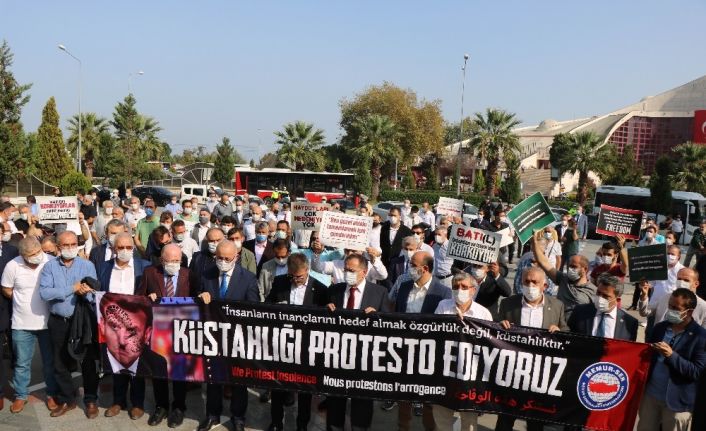 Fransa’nın insan haklarına ve özgürlüklerine saygısı olmadığını ifade eden Memur-Sen Samsun İl Temsilcisi ve Eğitim-Bir-Sen Samsun 1 Nolu Şube Başkanı Hamdi Yıldız, “Sömürgenin merkezlerinden olan Fransa Cumhurbaşkanı Emanuel Macron, son birkaç zamandır cinnete esir politikalarına bir yenisini ekleyerek, insanlığa rahmet olarak gönderilen, hatem-ül enbiya Hz. Muhammed Mustafa’ya ilişkin sözde karikatürlere fikir özgürlüğü adına sahip çıkması ve Müslümanları aşağılamasını tel’in etmek için burada toplandık. Aslında Macron, bir görüntü. Avrupa’da birçok ülkede bir cinnet hali yaşanıyor. Yabancı düşmanlığı, ırkçılık ve İslamofobi, o meşhur Avrupa aklını esir almış, çoğulculuk söylemlerinin sırçası dökülmüş ve nihayet aşırı sağ siyasetin ürettiği politikalar siyaseti belirler hale gelmiştir. Almanya’da cami baskını, Hollanda’da Gert Wilders’in terör ve şiddet içeren konuşmaları ve nihayet Macron’un, ifade hürriyeti arkasına sığınarak, İslam’a ve Peygamberine saldıran unsurlara sahip çıkması cinnetin boyutlarını göstermektedir. Burada bir parantezle bir başka tepkimizi de özellikle ifade edelim. Kutsal emanetlerimizin mekanı olmakla yetinip, kutsala sahip çıkmayı beceremeyen Suudi Arabistan yönetimini ve onunla aynı kulvarda bulunmaya teşne Birleşik Arap Emirlikleri’ni de tarih ve bizler not ediyoruz. Dine ve Kutlu Nebi’ye dönük hakaret faillerinin kuyruğuna takılan ülkelerin ve yöneticilerin, emperyalist taşeronluğu ve kapitalistlerin sömürü baronluğu sıfatlarının sona ermesinin de yakın olduğuna inanıyoruz” dedi.