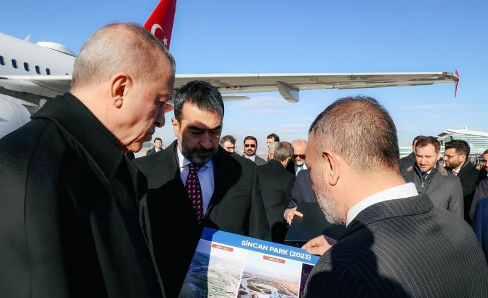Cumhurbaşkanı Recep Tayyip Erdoğan’ı havalimanında karşılayan Sincan Belediye Başkanı Murat Ercan, Sincanla ilgili projelerini Cumhurbaşkanı Erdoğan’a sundu.