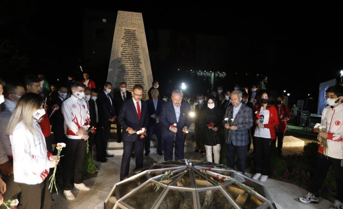 Daha sonra gençler ile fotoğraf çektiren Şentop, TBMM’ de ilk bombanın düştüğü anıta karanfil bıraktı.