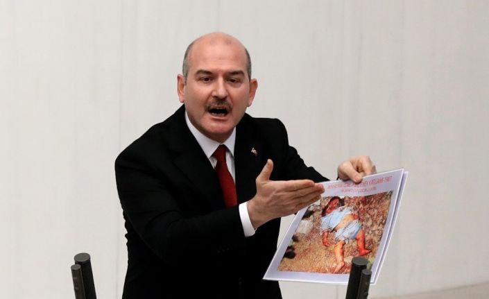 Soylu, Bakan Yardımcısı’nın beş kere ailelerle görüştüğünü belirterek, “Şimdi vereceğim rakam Türkiye Cumhuriyeti’nde ilk kez söylenen rakamdır. 1984’ten bugüne kadar terör örgütü 6 bin 21 sivil katliam gerçekleştirdi. O insan hakları denilen canı çıkasıca dernek bir tanesi için bunları söyledi mi? İnsan Hakları denen dernek bir tanesini söyledi mi? Devlet burada üstüne düşen her şeyi yapmıştır. ’Bunları getirin, her türlü teminatı biziz’ denildi. Şu MLKP’li gözaltına alınmış denildi, onu bırakın şu askerleri getirin denildi. Öznur Çalık burada. Siz Pervin Buldan’ı aradınız mı, aramadınız mı? Pervin Buldan dedi ki ’biraz misafir edecekler, sonra bırakacaklar.’ 1987 16 şehit, 10 çocuk, 2 kadın. Bunlara acımayan, benim polisime, askerime, kahraman jandarmama, sivil vatandaşıma acır mı? Bombalama yalanlarını bildiğimiz için hemen inisiyatif alarak valiye, başsavcıya, 2. Ordu komutanına ’beşiniz beraber olacaksınız, meseleyi de şöyle yürüteceksiniz’ dendi. Fotoğraflar çekilecek, aileler gelecek ve vücut bütünlükleri görülecek, hepsinin tutanakları tutulacak. Otopsi raporlarının hepsi burada. İçimiz kan ağlıyor. Bu fotoğraflara baktığımız zaman Allah şahittir o Karayılan’ı bin parçaya bölmezsek. Burada Türkiye Cumhuriyeti Devleti hukukun, namusun dışında adım atmamıştır. Orada iki terörist yakalandı, alındı, ifadesi alındı. Bu evlatları ülkesine, ailelerine canlı kavuşulsun diye büyük bir merak ve beklenti içindeydik. Dün aileleri ile nasıl konuşacağımızı kara kara düşündük” diye konuştu.