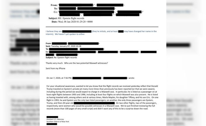 ABD Adalet Bakanlığı, kız çocuklarına yönelik cinsel istismar şebekesi kurmakla suçlanan ve hapishanede ölü bulunan milyarder Jeffrey Epstein’in soruşturma dosyasında yer alan belgelerden bir yenisini daha kamuoyuyla paylaştı. Belgelerde yer alan e-postada, ABD Başkanı Donald Trump’ın 1990’lı yıllarda Jeffrey Epstein’ın özel jetiyle daha önce bilinenin ötesinde birçok kez seyahat ettiğini gösteren bilgiler yer aldı. Konu başlığı "RE: Epstein uçuş kayıtları" olan e-posta, gönderen ve alıcı bilgileri karartılmış şekilde servis edilirken, e-postanın altında adı karartılmış şekilde New York Güney Bölgesi’nden bir yardımcı ABD savcısının unvanı görüldü.