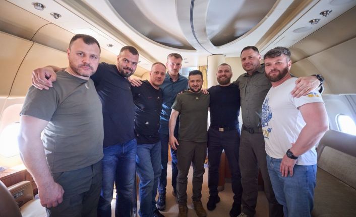 Dün Cumhurbaşkanı Recep Tayyip Erdoğan ile iki ülke arasındaki ilişkilerin yanı sıra, Rusya-Ukrayna savaşındaki son gelişmeler, 17 Temmuz’da sona erecek olan Karadeniz tahıl anlaşması ve Karadeniz bölgesinde barış ve istikrarın sağlanması gibi bölgesel ve uluslararası konuları ele almak için İstanbul’a gelen Ukrayna Devlet Başkanı Vladimir Zelenskiy, Türkiye’den ayrıldı. Zelenskiy, sosyal medya hesabından yaptığı açıklamada, 5 Azov Taburu komutanlarının Ukrayna’ya döndüğünü açıklayarak “Bugün kahramanlarımızı eve götürerek Türkiye’den ayrılıyoruz. Ukraynalı komutanlar Denys Prokopenko, Svyatoslav Palamar, Serhiy Volynsky, Oleh Khomenko, Denys Shleha sonunda aileleri birlikte olacak. Ukrayna’nın şerefine” dedi.