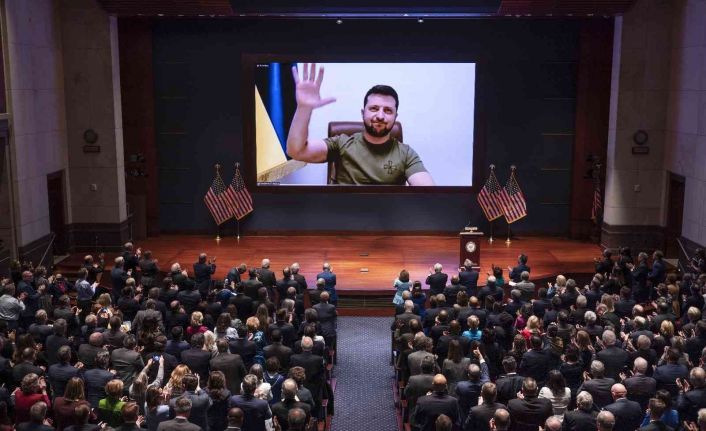 Ukrayna Devlet Başkanı Vladimir Zelenskiy, İngiltere ve Kanada parlamentolarının ardından Ukrayna’nın başkenti Kiev’den videokonferans yoluyla ABD Kongresi’ne hitap etti. ABD Kongresi’ndeki konuşması öncesi iki parti tarafından da ayakta alkışlanan Zelenskiy, Ukrayna hava sahasının kapatılması için yardım çağrısını yineledi.