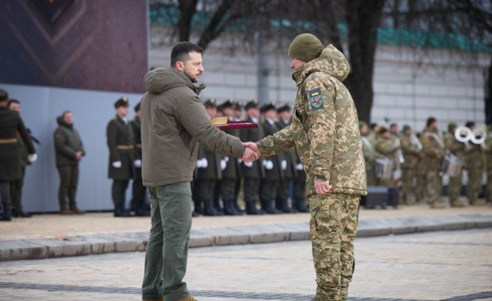 Ukrayna Devlet Başkanı Vladimir Zelenskiy, Rusya-Ukrayna savaşının 1. yıl dönümünde başkent Kiev’de gerçekleştirilen törende Ukrayna askerlerini devlet nişanıyla ödüllendirdi.