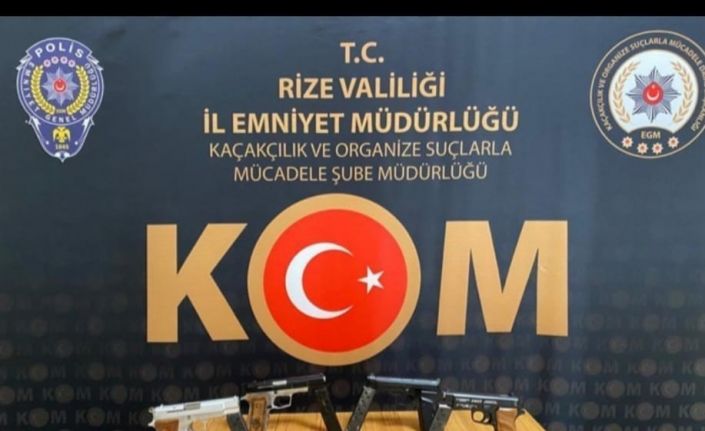 Rize İl Emniyet Müdürlüğü Kaçakçılık ve Organize Suçlarla Mücadele Şube Müdürlüğü ekiplerince yapılan çalışmalar çerçevesinde İl merkezinde durdurulan bir araçta 4 adet ruhsatsız tabanca ve 6 adet fişek ele geçirildi. Emniyet Müdürlüğünce konu ile ilgili 2 şahıs hakkında gerekli adli işlemler yapıldığı belirtildi.