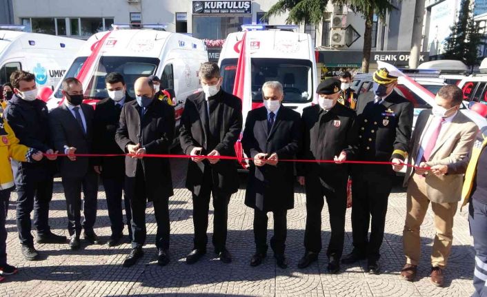 Samsun’da "112 Günü" dolayısıyla düzenlenen etkinlikte İl Sağlık Müdürlüğü envanterine eklenen 2 yeni ambulans ve 2 yeni UMKE kurtarma aracının tanıtımı yapıldı.