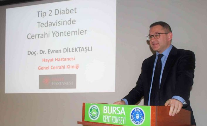 Bursa Kent Konseyi Sağlık Çalışma Grubu tarafından "Diyabet erken dönemde fark edildiğinde tedavi edilebilir bir hastalıktır" sloganıyla düzenlenen Diyabet Okulu’nun 2’nci dönem eğitimlerine konuk olan Özel Hayat Hastanesi Genel Cerrahi Obezite ve Metaboli Cerrahi Uzmanı Doç. Dr. Evren Dilektaşlı, diyabetin tedavi yöntemlerinin çok geliştiğini ve her hastaya, hastalığının hikayesine özgü bir tedavi yönetiminin uygulanması gerektiğini söyledi. Dilektaşlı, “Diyabeti obeziteden, obeziteyi ise diyabetten ayırmak mümkün değil. İkisi de birbirini arttıran hastalıklar. Bu hastalıklarının birçok sebebi var. Bunda elbette genetik faktörler başta geliyor. Fakat çevresel etkiler, hayat tarzımızdaki değişiklikler, çalışma şartları ve egzersiz eksiklikleri etkili oluyor. Obeziteyle yaşayan bireylerde Tip 2 diyabetin gelişme şansı 6 ile 12 kat artıyor. 2030 yılına kadar önlenebilir ölümlü hastalıklarda 7’nci sırada yer alıyor. Dünyada diyabet gün geçtikçe artıyor" dedi.