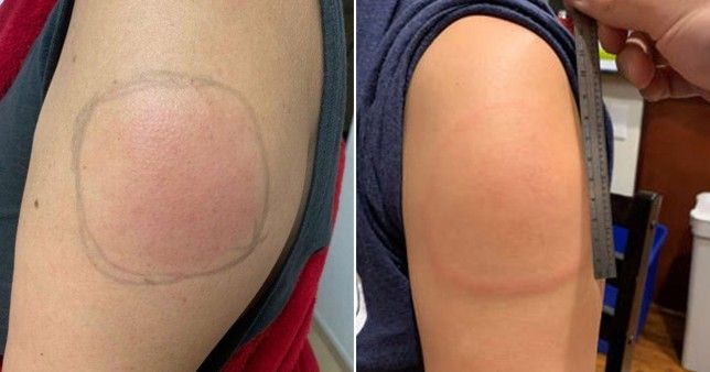 ABD’de Massachusetts Genel Hastanesi Dermatoloji Bölümü Direktörü Doktor Esther Freeman söz konusu yan etkiye yönelik, "İnsanlara bunun bilinen bir etki olduğuna dair güvence vermek isteriz. Birkaç gün kolunuzda büyük kırmızı leke olması hoş olmayabilir, ancak gerçek şu ki paniğe gerek yok ve ikinci dozu yaptırmamak için bir neden yok" diyerek yan etkinin zararsız olduğunu belirtti.