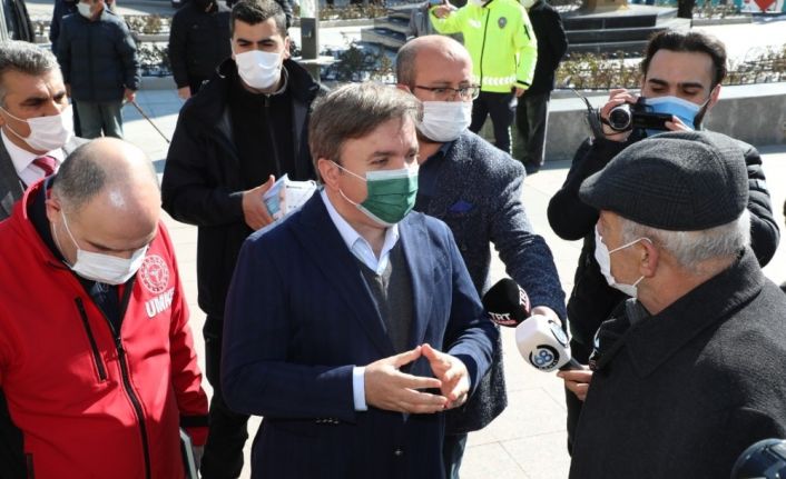 Vali Aydoğdu ve denetim ekipleri daha sonra kent merkezinde alınan tedbirlerle ilgili denetim gerçekleştirdi. 65 yaş üstü vatandaşların bulunduğu Ulu Cami ve Kent Meydanında vatandaşlarla görüşen Vali Aydoğdu, 65 yaş üstü vatandaşların dışarıda bulunma saatlerine azami dikkat etmelerini istedi. Banka önlerinde ve sokaktaki vatandaşlara mesafe ve maske uyarısında bulunan Vali Aydoğdu esnafları da ziyaret ederek salgın tedbirleri konusunda duyarlı olmalarını tedbirlere uyulmasının önemini vurguladı.