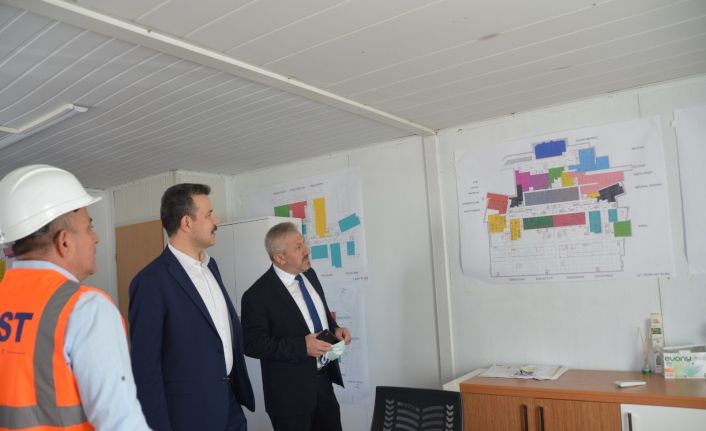 TBMM Sağlık Komisyonu Üyesi ve AK Parti Bursa Milletvekili Mustafa Esgin ile İl Sağlık Müdürü Dr. Fevzi Yavuzyılmaz, yapımı hızla devam Ali Osman Sönmez Devlet Hastanesi inşaatında incelemelerde bulundu. Acemler’deki inşaatı devam eden ve toplamda bin 315 yatak kapasiteli olacak Ali Osman Sönmez Devlet Hastanesi’nin 188 erişkin yoğun bakım yatağı, 43 yeni doğan yoğun bakım yatağı, 231 poliklinik ve 32 ameliyathanesi olacak. Yüklenici firmadan hastane projeleri hakkında bilgi alan Milletvekili Esgin ve Dr. Yavuzyılmaz, inşaat alanında da incelemelerde bulundu.