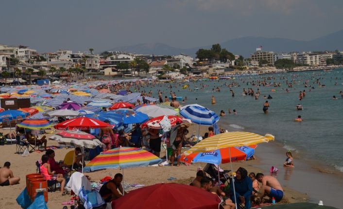 Artan korona virüs vakalarına rağmen Altınkum Plajı tıklım tıklım