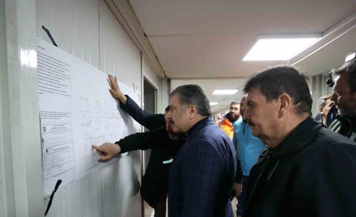 Sağlık Bakanı Dr. Fahrettin Koca, Hatay’ın Defne ilçesinde yapımı devam eden Kocaeli Büyükşehir Belediyesi’nin hastanesinde incelemelerde bulundu. İncelemede Bakan Koca’ya Burdur Valisi Ali Arslantaş ile Kocaeli Büyükşehir Belediyesi Genel Sekreter Yardımcısı Dr. Hasan Aydınlık da eşlik etti. Genel Sekreter Yardımcısı Aydınlık, Bakan Koca’ya hastane alanının 96 konteynerden oluşacağı, sağlık çalışanlarının barınması için ayrıca konteynerlerin kurulacağı ve 54 yataklı hastanede poliklinik hizmetlerinin yanı sıra ameliyathane ve yoğun bakım ünitesinin de olacağı bilgisini verdi.