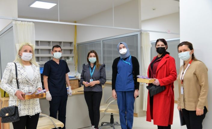 Dernek Başkan Yardımcısı Duman, dernek olarak bu zor günlerde sağlık çalışanlarının yanında olmak istediklerini ifade ederek, "Bizler evimizdeyken onlar canları pahasına sevdiklerinden ayrı, uğradıkları onca hakaret ve şiddete rağmen yüzlerinde iz bırakan maske ve gözlüklerin ardında nefessiz kalıp bizlere nefes oluyorlar. Toplum sağlığı için gece gündüz çalışan sağlık personeline teşekkürlerimizi ve minnettarlığımızı göstermek amacıyla kendi ürettiğimiz hurmalardan ikram etmek istedik. İyiki varlar. Fedakarlıklarını asla unutmayacağız" dedi.