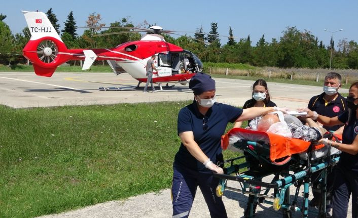 Samsun’da beyin kanaması geçiren yaşlı adam Sağlık Bakanlığına ait ambulans helikopterle hastaneye yetiştirildi.