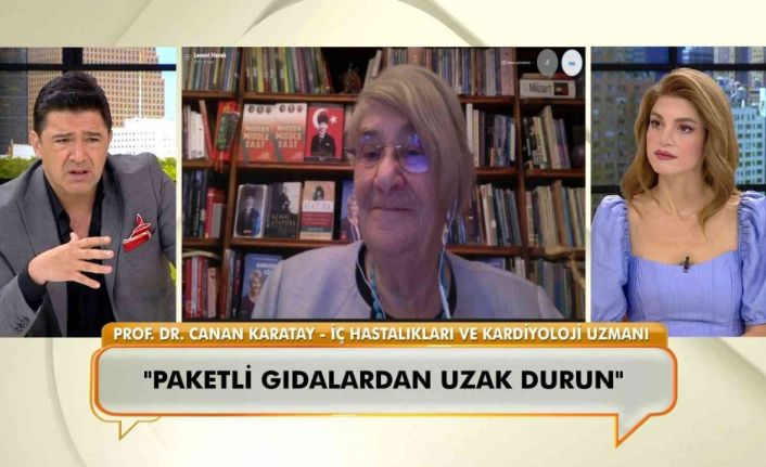 İç hastalıkları ve kardiyoloji uzmanı Prof. Dr. Canan Karatay, Kanal D ekranlarında hafta içi her gün yayınlanan sunuculuğunu Hakan Ural ile Hilal Özdemir’in yaptığı ‘Neler Oluyor Hayatta’ programına görüntülü bağlandı. Karatay, yemeğin acıkınca yenmesi gerektiğini ve gece saatlerinde yemek yenmemesi gerektiğini belirtti. Ayrıca Karatay, antidepresanların da tehlikeli olduğunun altını çizdi.